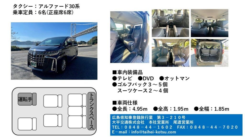 空港送迎やしまなみ海道観光にも最適です。